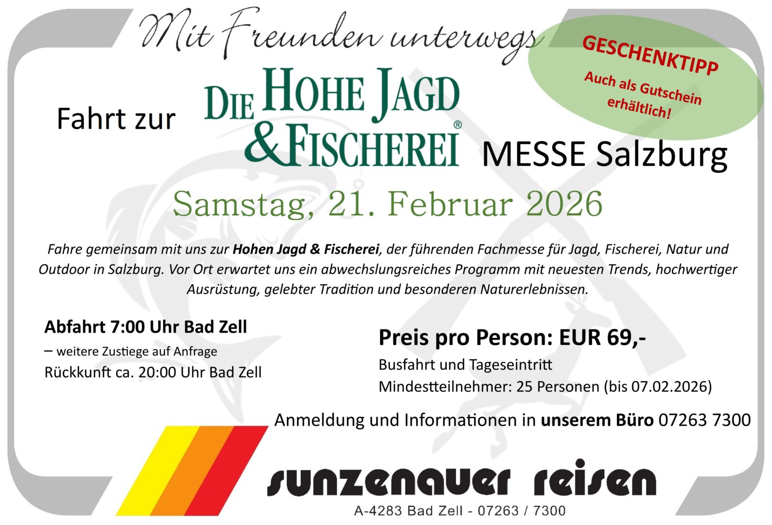 Veröffentlicht am 20. Dezember 202520. Dezember 2025Messe „Die Hohe Jagd & Fischerei“ 21. Februar 2026 Anmeldung telefonisch oder per Mail!